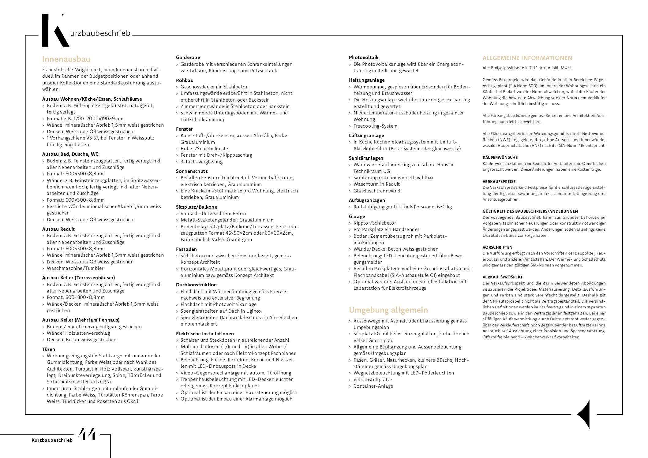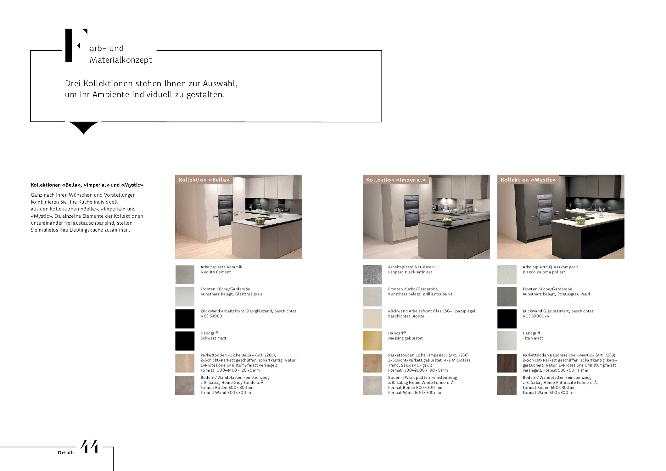 Alle Unterlagen im Überblick Verkaufsdokumentation Grundrisse Umgebungsplan Kurzbaubeschrieb Küchenkollektionen